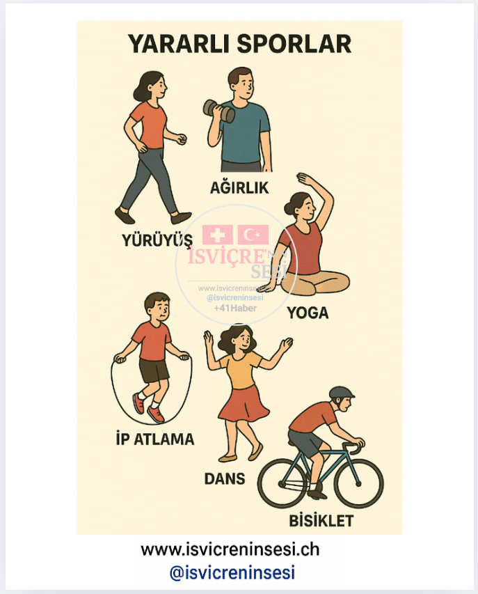Yürüyüş, koşu, dans, merdiven çıkma, ip atlama: Kemiklere düzenli yük bindirerek kemik yoğunluğunu korur/artırır.