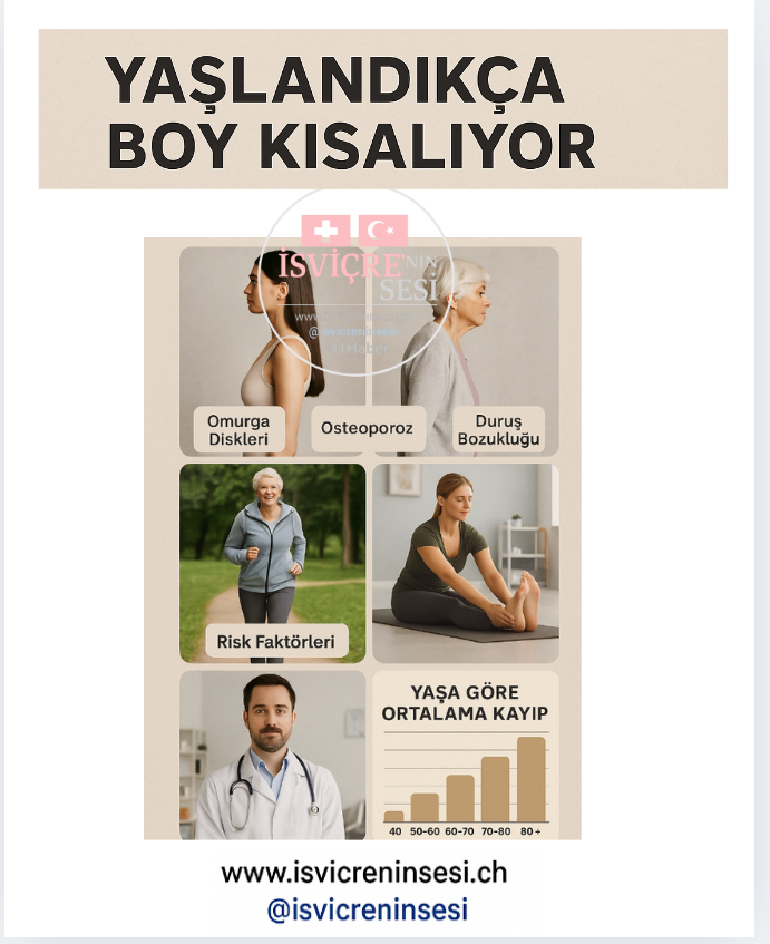 - Harvard Health: Yaşla birlikte disk kaybı, kemik erimesi ve duruş bozuklukları nedeniyle boyda azalma sık görülür.